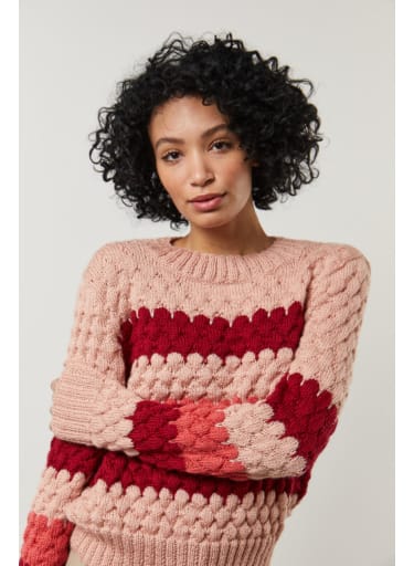 À la recherche d'un projet de tricot qui allie style et originalité ? Découvrez notre pull tricolore en fil IDEALE 4, orné de magnifiques points fantaisie en forme de bulles pour un look unique et tendance ! Ces motifs créatifs apportent de la texture et du relief à votre tricot, créant un effet visuel saisissant et plein de vie.